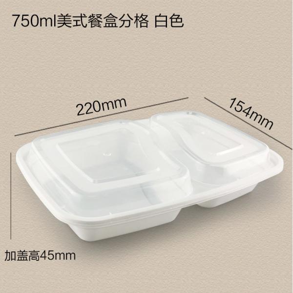 750ml Plastic Food Packing Box Disposable 2 Compartment PP White 220x154x45mm Images |